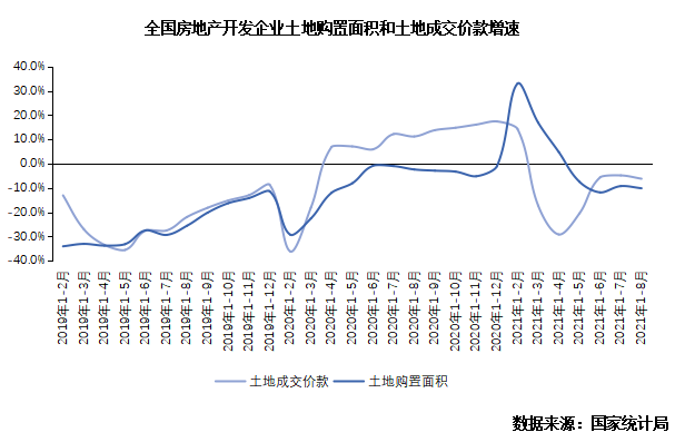 據(jù)國家統(tǒng)計局數(shù)據(jù):1—8月,房地產(chǎn)開發(fā)企業(yè)土地購置面積10733萬平方米,同比下降10.2%;土地成交價款6647億元,下降6.2%;二者較1-6月降幅分別擴大1.7PCT和0.6PCT。三季度整體土地市場進一步降溫,房企土地購置面積和成交價款進一步走低。
