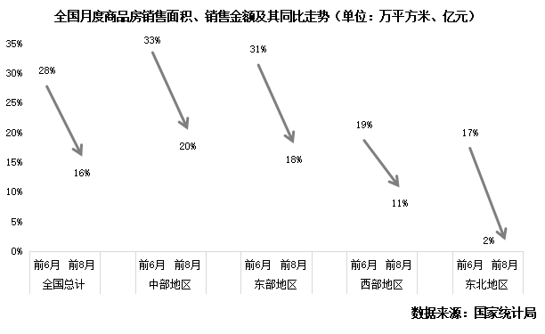 東部地區(qū)和中部地區(qū)將面臨更大增速回落。在信貸政策收緊下地區(qū)內(nèi)三四線城市當前出現(xiàn)的“二手房斷貸”、“新房首付流水嚴查”、“房貸利率上揚”等仍將繼續(xù)對需求釋放形成制約;調(diào)控監(jiān)管深化下地區(qū)內(nèi)上半年高熱的一二線城市在四季度將明顯降溫,“二手房指導價”、“新房房票”等各地新政下部分投機性購房行為將被抑制。