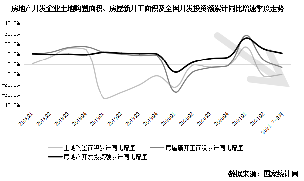 在房屋新開工與整體土地購置的乏力下,建安投資與土拓投資雙雙回落不可避免地將繼續(xù)減低整體開發(fā)投資額增速。預計四季度開發(fā)投資增速將降至10%以內(nèi)并進一步回落。