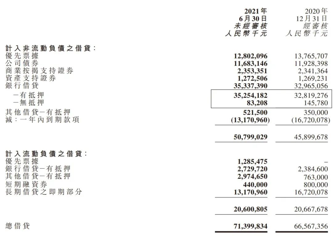 其中銀行及其他借款占比最多,為415.63億元、公司債券約116.83億,其他還有短期融資券、商業按揭支持證券、資產支持證券、優先票據等。