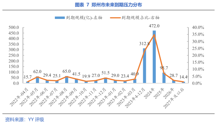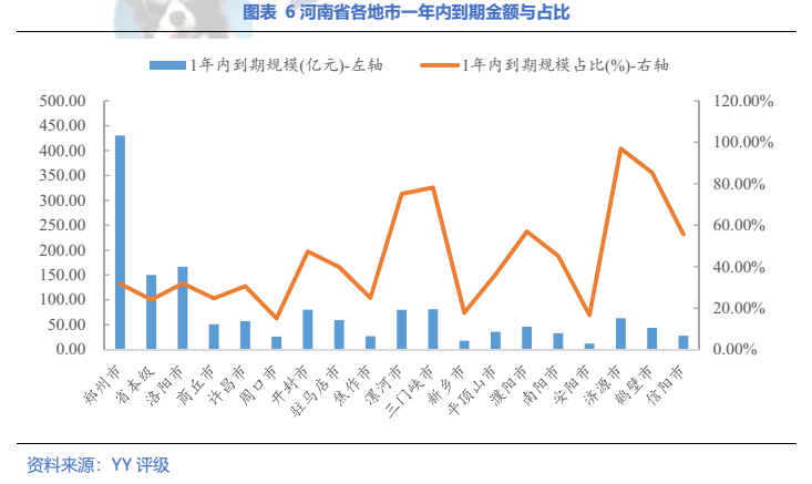 全省一年內到期債券占34.7%,鄭州占比最高,近30%