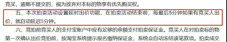 有5分鐘的延時周期,即拍賣10點結(jié)束,但有人9:56出價,則拍賣延長至10:01分結(jié)束,5分鐘內(nèi)的每次出價都會觸發(fā)延時,直至無人出價為止。但如果只有1個人參拍,最后就以起拍價成交。