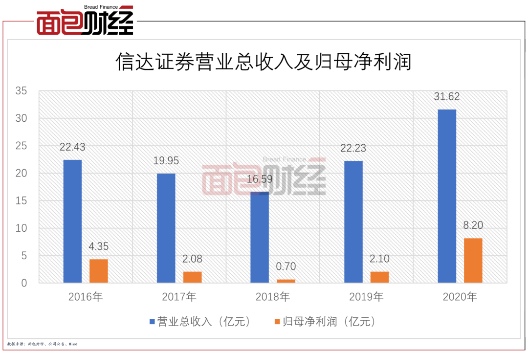 除了證券經(jīng)紀(jì)業(yè)務(wù),信達(dá)證券的證券自營(yíng)及投資銀行業(yè)務(wù)是公司營(yíng)收貢獻(xiàn)較大的兩項(xiàng)業(yè)務(wù)。數(shù)據(jù)顯示,2020年證券自營(yíng)業(yè)務(wù)實(shí)現(xiàn)營(yíng)收4.16億元,在總營(yíng)收中占比13.14%;證券投資銀行實(shí)現(xiàn)營(yíng)收5.42億元,總營(yíng)收占比為17.14%。雖然營(yíng)收占比較大,但兩項(xiàng)業(yè)務(wù)的收入波動(dòng)也較大。