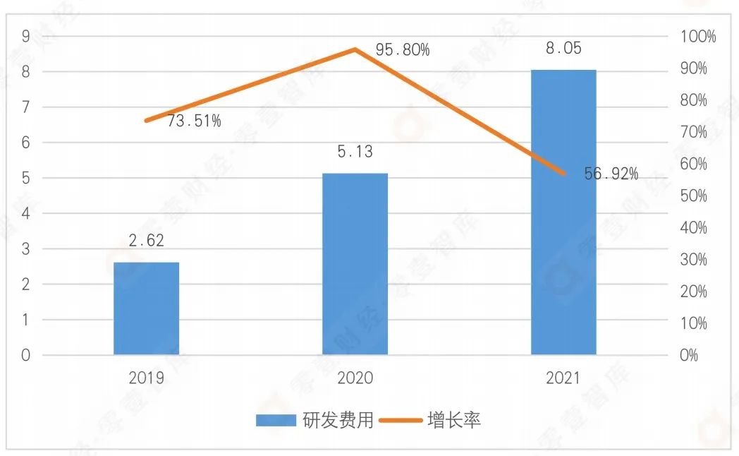 圖3 富途近三年研發(fā)費(fèi)用及增長(zhǎng)率(單位:億港元)