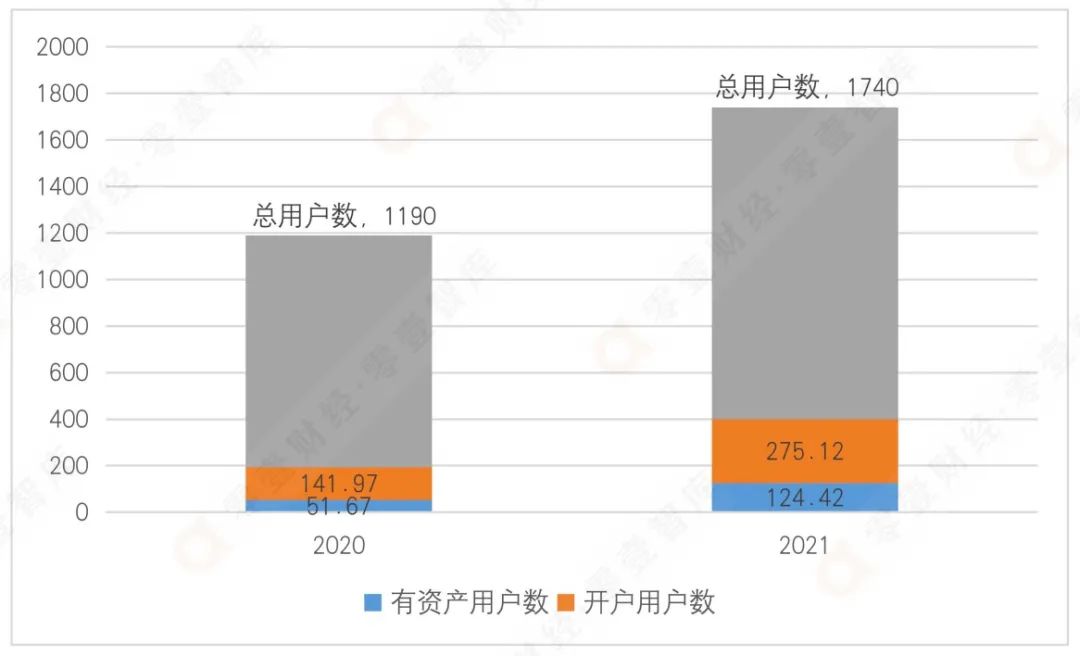 圖2 富途2020年和2021年用戶數(shù)量及結(jié)構(gòu)