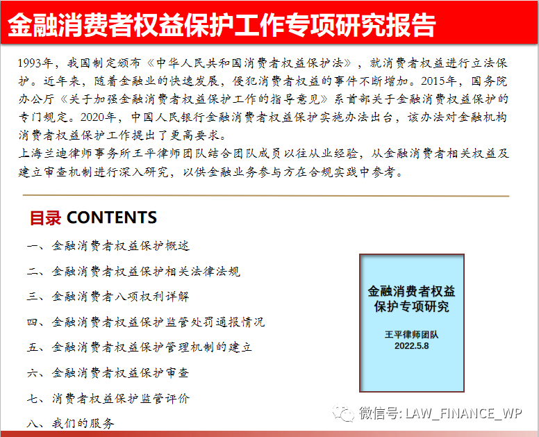 上海蘭迪律師事務(wù)所王平律師團(tuán)隊(duì)結(jié)合團(tuán)隊(duì)成員以往從業(yè)經(jīng)驗(yàn),從金融消費(fèi)者相關(guān)權(quán)益及建立審查機(jī)制進(jìn)行深入研究,以供金融業(yè)務(wù)參與方在合規(guī)實(shí)踐中參考。