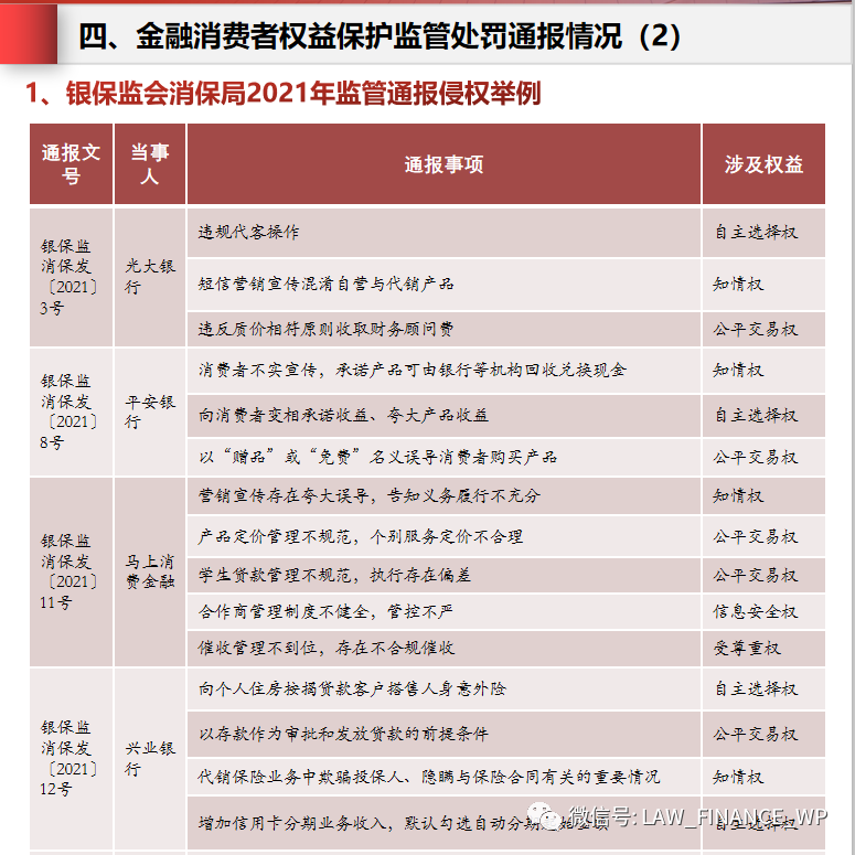 四、金融消費(fèi)者權(quán)益保護(hù)監(jiān)管處罰通報(bào)情況