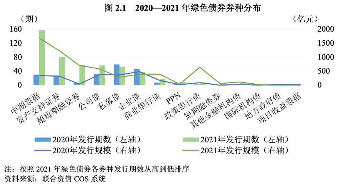 1.綠色中期票據(jù)發(fā)行量居首位,銀行間市場仍是綠色債券主要發(fā)行場所
