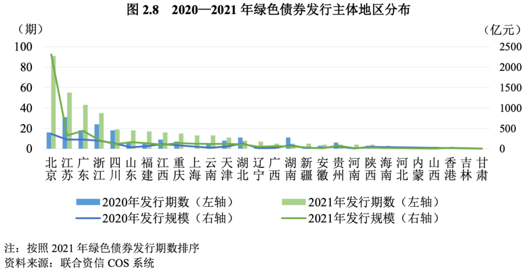 8.東部地區(qū)仍為綠色債券主要發(fā)行區(qū)域