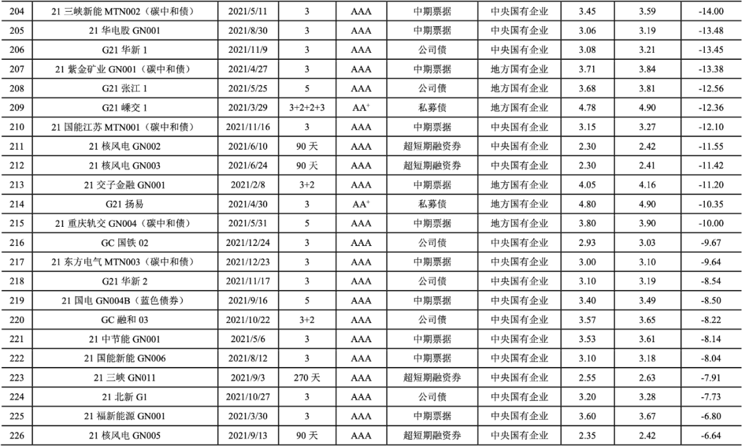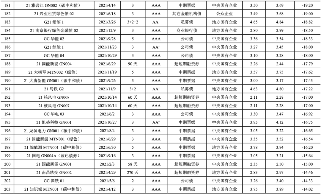 [14]可比債券為綠色債券起息日前后各十五天內(nèi)起息的同期限、同級別、同券種、同企業(yè)性質(zhì)的非綠色債券,不包括中央?yún)R金公司、中國鐵路總公司發(fā)行的債券及可續(xù)期債券;對含有選擇權(quán)的債券按選擇權(quán)之前的期限統(tǒng)計(jì);短期融資券和超短期融資券選用其主體級別,其他券種均選用債項(xiàng)級別。