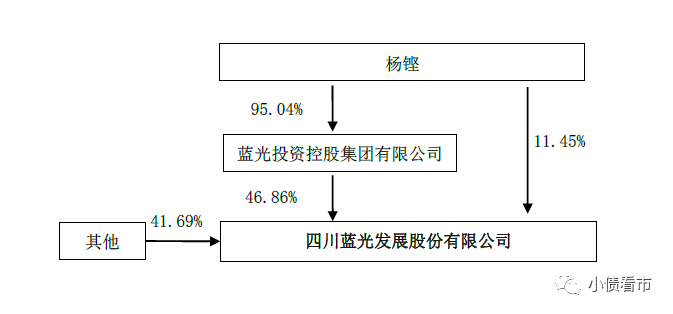 從股權結構上來看,藍光發(fā)展的控股股東為藍光控股,持股比例為46.86%,穿透后公司實控人為楊鏗。