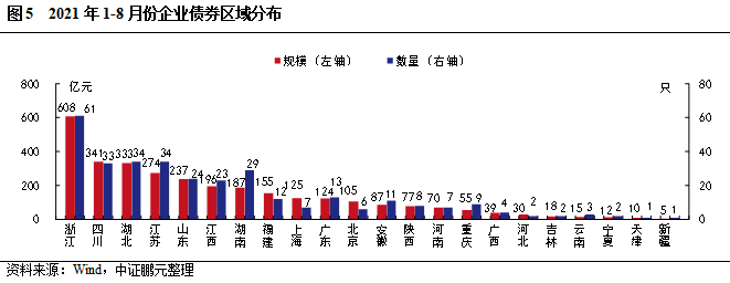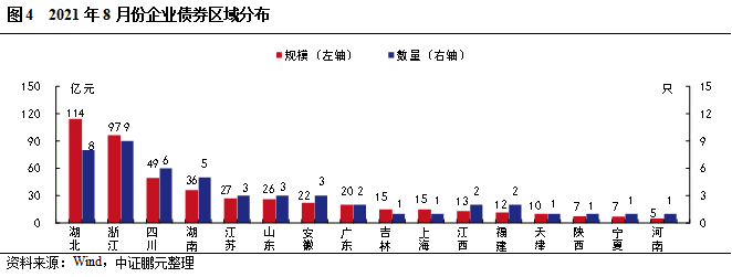 8月國信證券企業債券承銷規模最大。2021年8月,共有16個省份發行了企業債券。