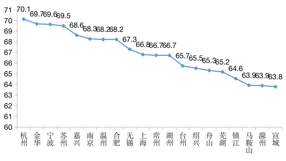 其中,杭州勞動(dòng)力比重達(dá)到70.12%,在長三角41城中居于首位,與2010年全國平均值持平,堪稱長三角地區(qū)“活力之城”。放眼全國,杭州勞動(dòng)力比重僅比深圳、廣州、珠海、佛山、東莞和中山等少數(shù)城市略低,人口紅利依然存不容小覷。
