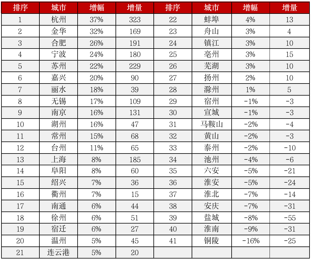 浙北和蘇南的城市雖然在教育水平和勞動(dòng)力比重上不及上述核心城市,但由于民營經(jīng)濟(jì)發(fā)達(dá),購買力也不容小覷,尤其是近十年人口增量比較突出的金華、嘉興等城市,需求支撐性較佳。