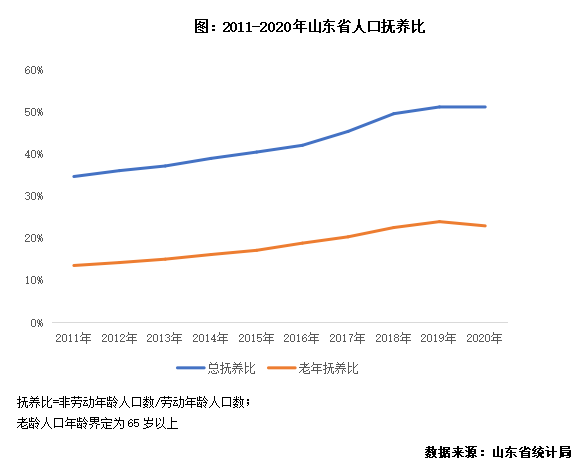 老年撫養(yǎng)比不斷提升,老齡化壓力較大。作為全國老年人口最多、老齡化程度較高、應(yīng)對人口老齡化任務(wù)較重的省份,2020年山東省65歲以上老年人口占比達到了15.13%,達到1536.4萬人。從人口撫養(yǎng)比來看,老年撫養(yǎng)比持續(xù)上升。預(yù)計到2035年,山東省的全省老年人口占比將達到30%,進入深度老齡化社會。對房地產(chǎn)開發(fā)企業(yè)而言,老齡化對住宅功能設(shè)計方面提出了要求,以及在康養(yǎng)板塊有較多的機遇。但從另一方面來說,老齡化也有可能帶來的是房屋購買需求減弱的問題。