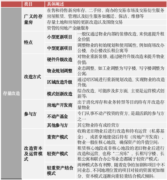 表:存量改造類目及具體內(nèi)容