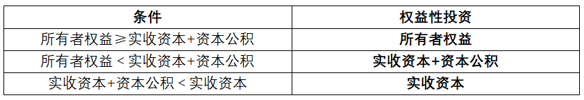 如果實收資本(股本)與資本公積之和小于實收資本(股本)金額,則權益投資為實收資本(股本)金額。”