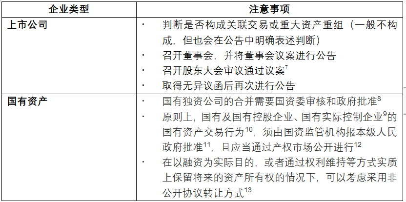 如果涉及到上市公司或國有資產,包括反向吸收合并在內的整個重組和轉讓過程,還需要分別注意如下事項,雖然有些偏題,但我們還是給大家進行一些要點提示: