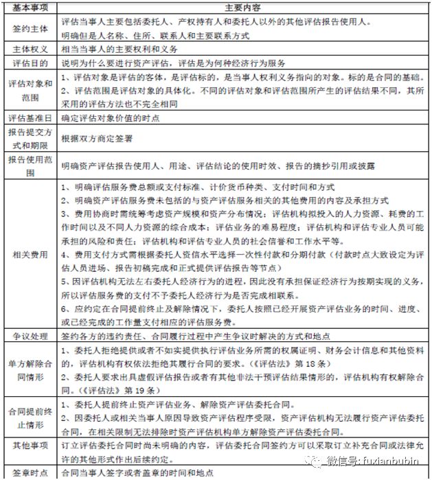 (二)資產評估委托合同的主要內容