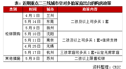 5月下旬-6月仍然是核心城市房地產(chǎn)政策松綁的重要窗口期。