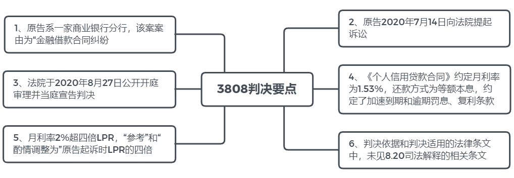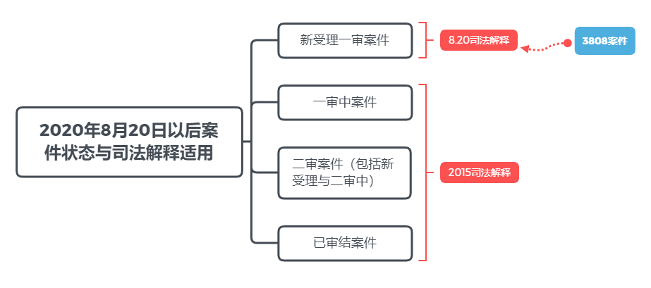 有觀點(diǎn)表示,8.20司法解釋第三十二條第二款規(guī)定:“借貸行為發(fā)生在2019年8月20日以前的,可參考原告起訴時一年期貸款市場報價利率四倍確定受保護(hù)的利率上限”,該款似乎可以作為3808案件作出“參照”判決的依據(jù)。