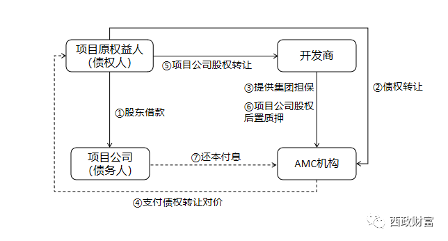 2.AMC向項目原權益人支付的債權轉讓對價款作為項目原權益人和開發(fā)商之間的實際股權轉讓對價,項目公司完成股權轉讓變更登記后后置質押至AMC名下。