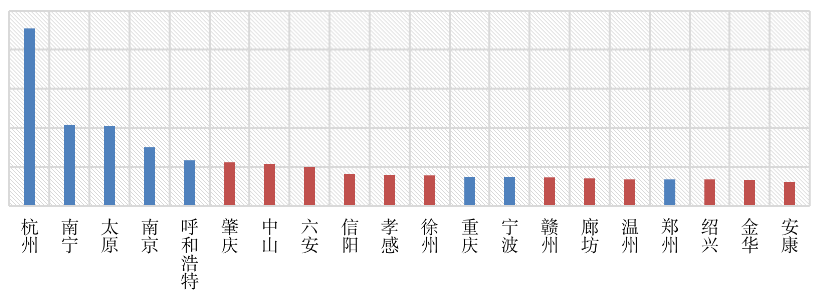 城市層面,城市集中度越來越高。1月,杭州成為百強拿地建面最高的城市,單月成交建面超過220萬平方米,除了德信、濱江、宋都等本地房企持續拿地以外,融創、招商、東原也有所斬獲。加之1月份大部分城市尚未進入供地狀態,建面TOP20城市中有12個是三四線城市。
