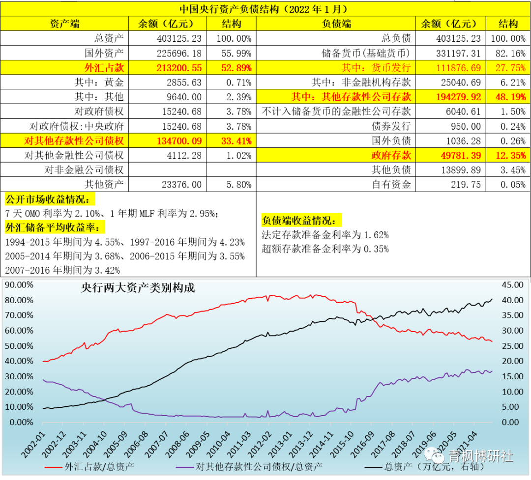 實際上,可以簡單這樣理解,央行對其他存款性公司的債權(quán)等可以視為發(fā)放的貸款(和商業(yè)銀行發(fā)放貸款一樣),央行的外匯儲備運用損益可以視為央行的對外投資(和商業(yè)銀行的債券投資一樣),央行的基礎貨幣可以視為央行吸收的存款(和商業(yè)銀行的存款一樣)。