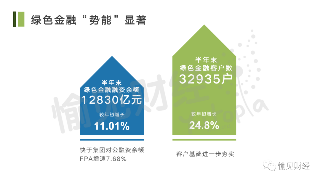 眼下新一輪五年規劃開局之年過半,興業銀行綠色金融發展“勢能”如何呢?12830億元的綠色融資余額,較年期初增長11.01%,快于集團對公融資余額FPA增速7.68%;32935戶的綠金客戶數,較年初更是大增24.80%,客戶基礎進一步夯實。