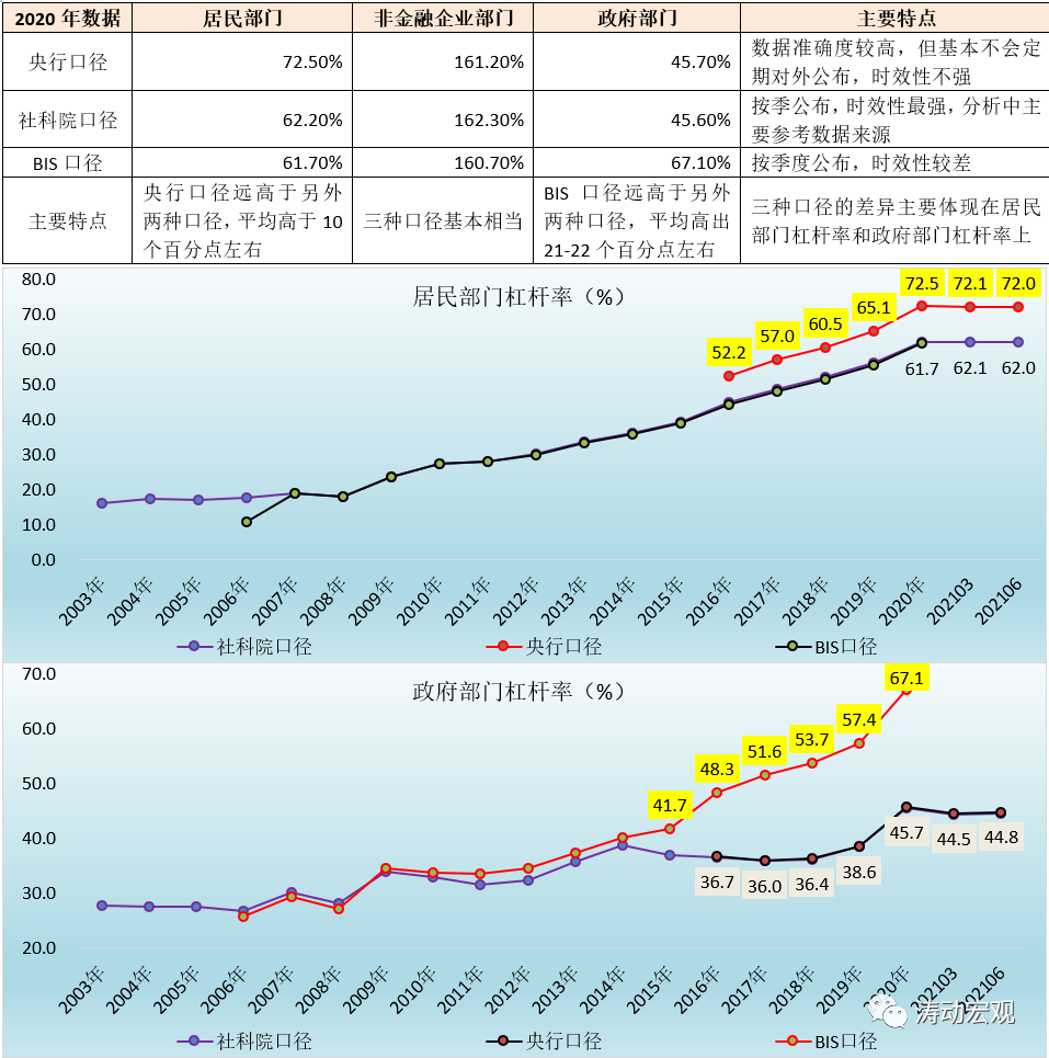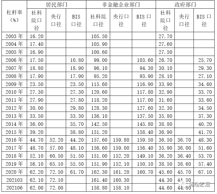 目前對于宏觀杠桿率這一指標,主要有三個口徑,分別為央行口徑、中國社科院口徑以及國際清算銀行(BIS)口徑。整體看,
