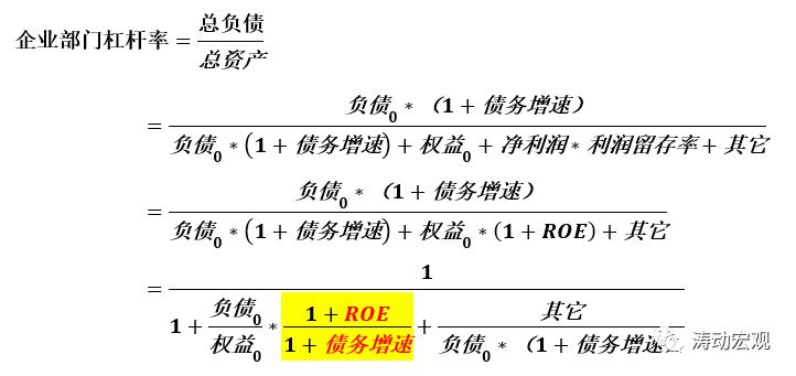 理論上,在企業沒有進一步補充資本的情況下,只有當企業的債務增速小于其ROE數值,才能保證其杠桿率有所下降,當然二者之間有一定制約關系。也即當企業盈利水平提高時,其資產負債率自然而然會內生性的下降,但是盈利水平的提升往往需要債務融資給予支持。從下面的推算中可以看出,企業部門杠桿率的下降只需要債務增速不高于ROE數值即可。