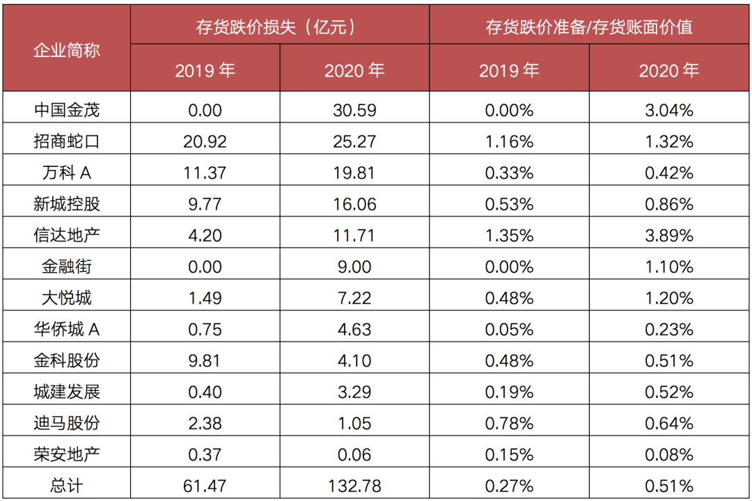 表:樣本房企2019、2020年存貨跌價(jià)損失及