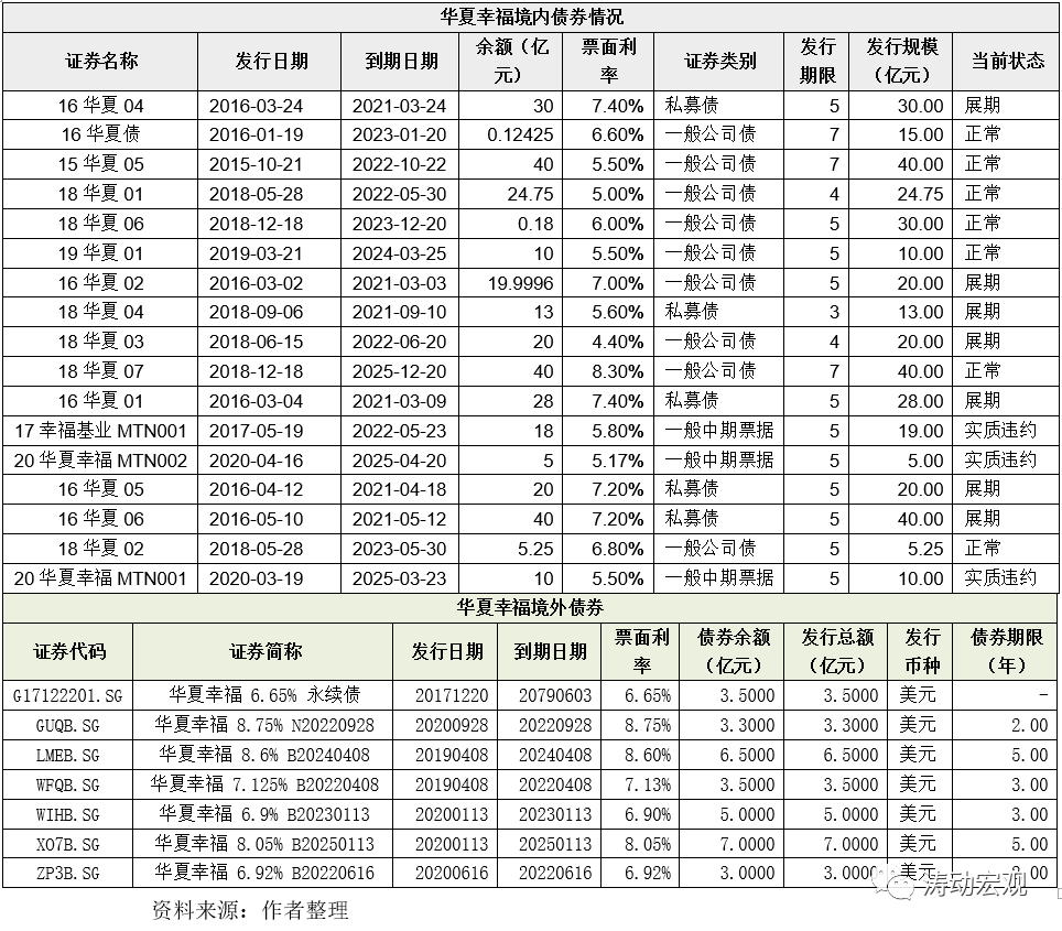 2、華夏幸福目前境外共有7只債券,共計31.80億美元,平均融資成本為7.57%。其中,有3只美元債券于2022年到期(合計9.80億美元)。有4只美元債在2020年發(fā)行,主要是因為華夏幸福2020年以來在境內(nèi)發(fā)債的難度較大。