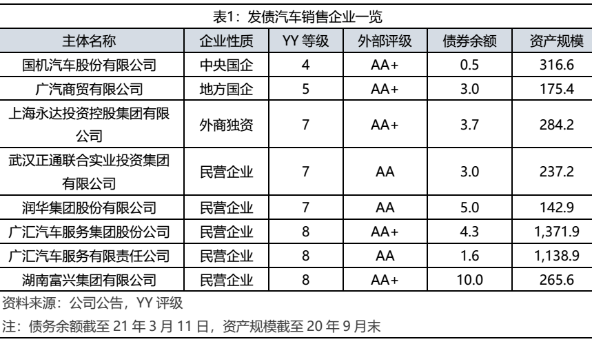 2.1 汽車銷售行業發債主體梳理