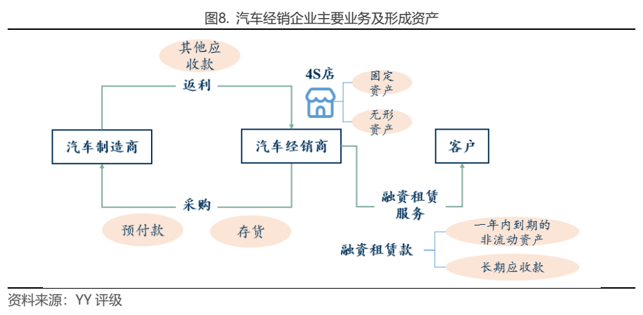 由于處于弱勢地位,汽車銷售行業慣例是在發貨前支付全款(廠商金融占比不高),部分品牌需要在下訂單時預付 5~10%的保證金,因此營運資金需求量大,營運能力及資金鏈的管理對于經銷商來說至關重要。