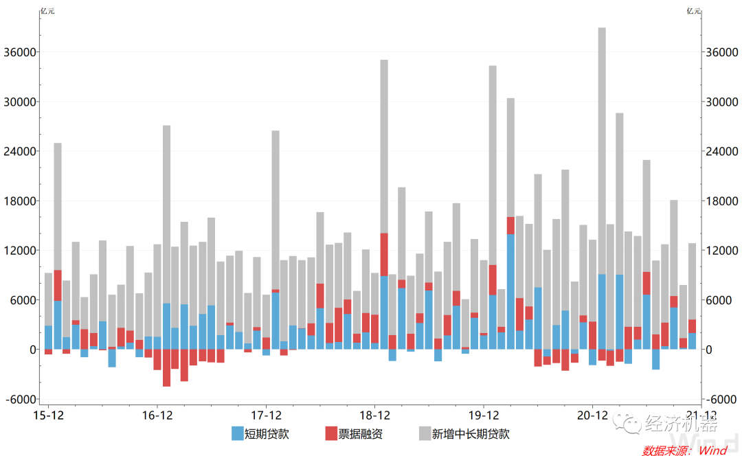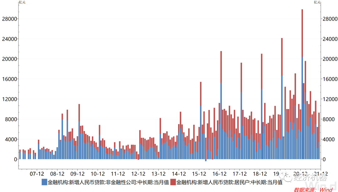 2)新增中長期貸款中,非金融企業貸款新增出現明顯下降,家庭和房地產貸款維持高位。11月中長期貸款中,非金融公司中長期貸款新增3417億,同比少增2470億元,較2019年同期還低約790億元。雖然11月企業生產有顯著改善,但信貸需求依然疲弱,可能表明企業對未來依然較為謹慎。