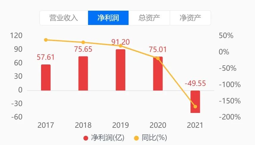 上圖企業預警通顯示,2021年榮盛發展的凈利潤為-49.55億元,同比下降166.06%,2020年雖然也是下降,但幅度遠沒有2021年大。
