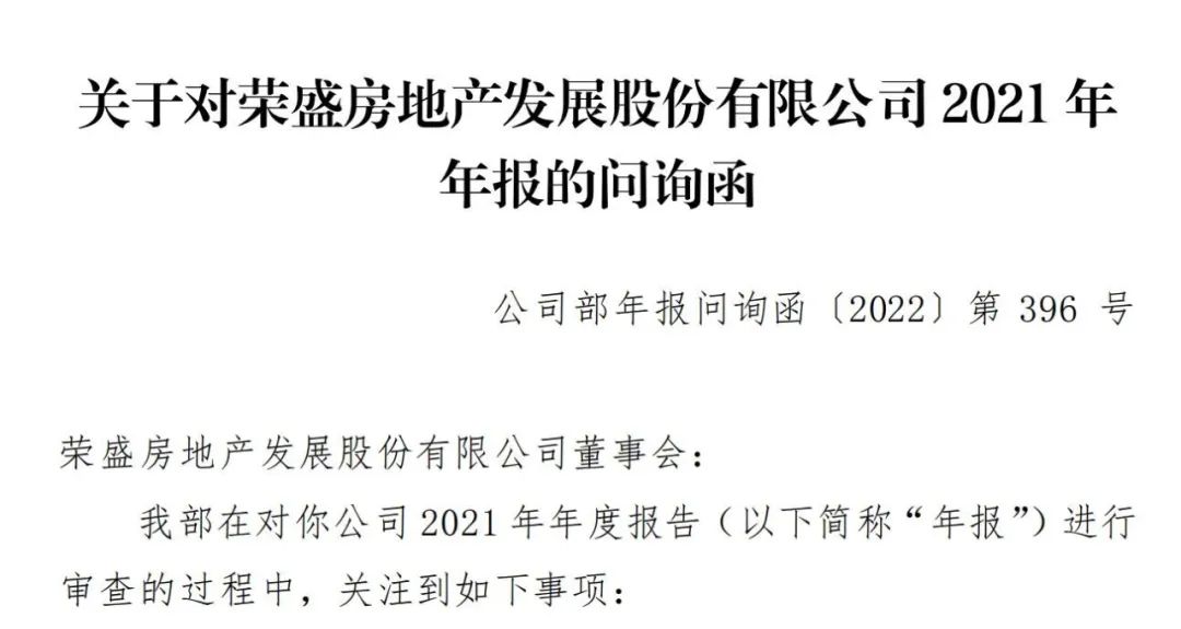 據公開披露,2022年5月25日,深交所再次下發了“關于對榮盛房地產發展股份有限公司 2021 年年報的問詢函”,一共八問、問問扎心。