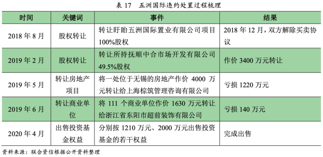 (2)違約處置方式二:變賣資產——五洲國際