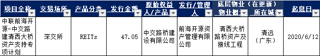 1、中聯(lián)前海開(kāi)源-中交路建清西大橋資產(chǎn)支持專項(xiàng)計(jì)劃(類REITs)