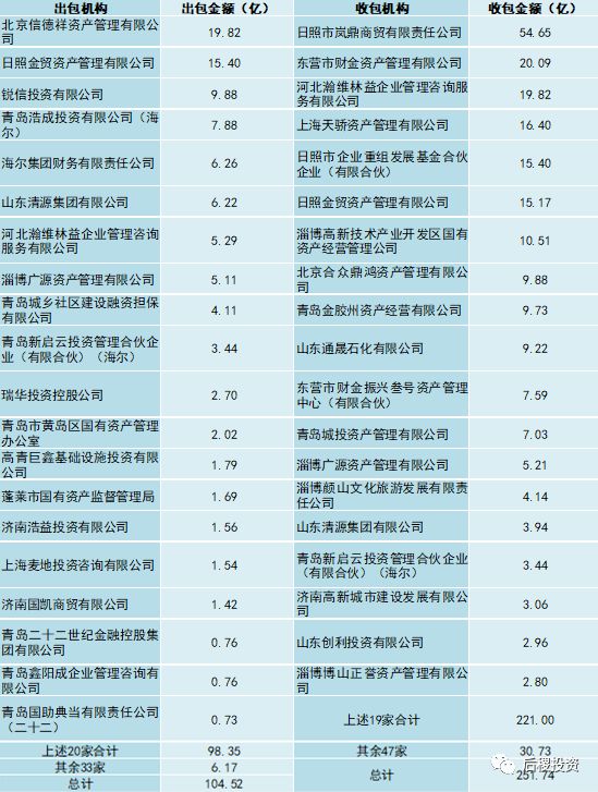 另上述所列二級投資機構(gòu)中,出包機構(gòu)中有六家具有國資背景,收包機構(gòu)中多達12家有國資背景,同時有三家“海爾系”企業(yè)。雖未在上述圖表中列明,但二級投資機構(gòu)中,還看到了律師事務所作為主體多次參與了出包和收包,也表明了市場參與主體的逐漸多元化。