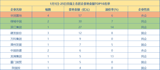 1月25日,易居研究院披露的《1月上市房企拿地排行》報告顯示,2022年年初至今,全國土地市場總體溫和平靜,僅有15家房企出手拿地,拿地金額為166億元,拿地?zé)崆閯?chuàng)下十一年同期以來的新低。其中國企央企比例為73%,而民企中只有萬科、龍湖、綠地、濱江4家拿地。