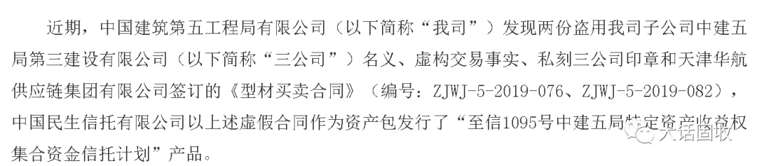 上周五,中建五局冷不丁發了個公告,里面點名了虛假合同和蘿卜章的問題: