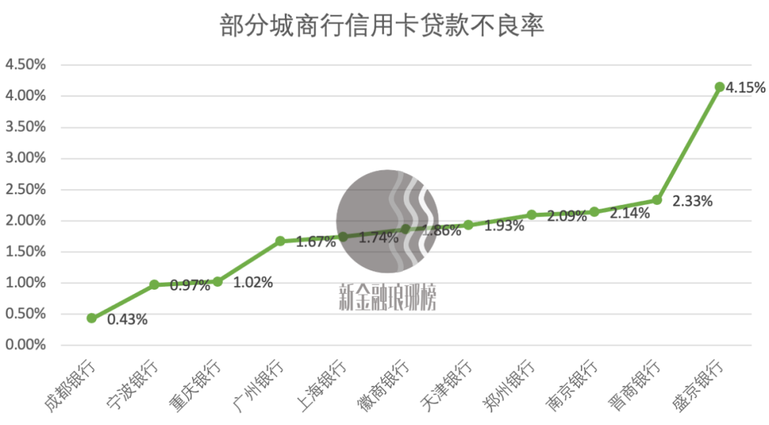 在披露了該項數據的城商行當中,盛京銀行不良率攀升最快。在去年信用卡貸款余額大幅增長84%的情況下,不良率依然增加了2.05個百分點至4.15%。