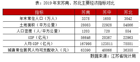 細化到單個城市來看,蘇北城市人口基數相對較大,徐州、鹽城2019年戶籍人口總量基本都在800-1000萬人,屬整個江蘇省城市前列,而宿遷、連云港、淮安人口優勢也比較顯著,2019年戶籍人口總量也在500-600萬人,不過值得關注的是,雖然蘇北戶籍人口總量基數較大,但外溢嚴重,蘇北五城的常住戶籍人口比均小于1,對本城的人口吸附力普遍較差。究其原因,主要與蘇南、蘇北的經濟差異,人口收入密切相關,當地人更愿意選擇去地理區位較近的上海、蘇南打拼,真正留在本地就業的相對較少。