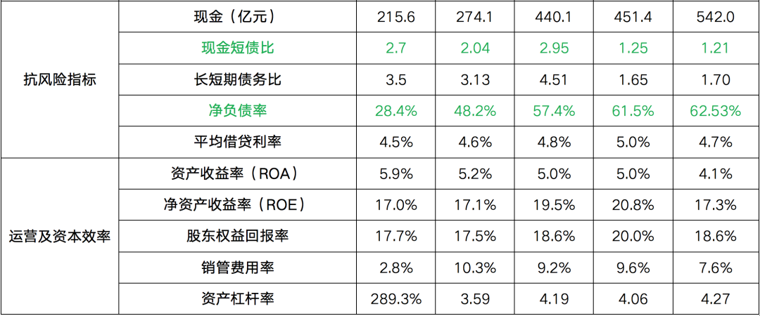 銷管費(fèi)用率=銷售及管理費(fèi)用/報(bào)告期內(nèi)操盤銷售金額;資產(chǎn)杠桿率=總資產(chǎn)/所有者權(quán)益合計(jì)