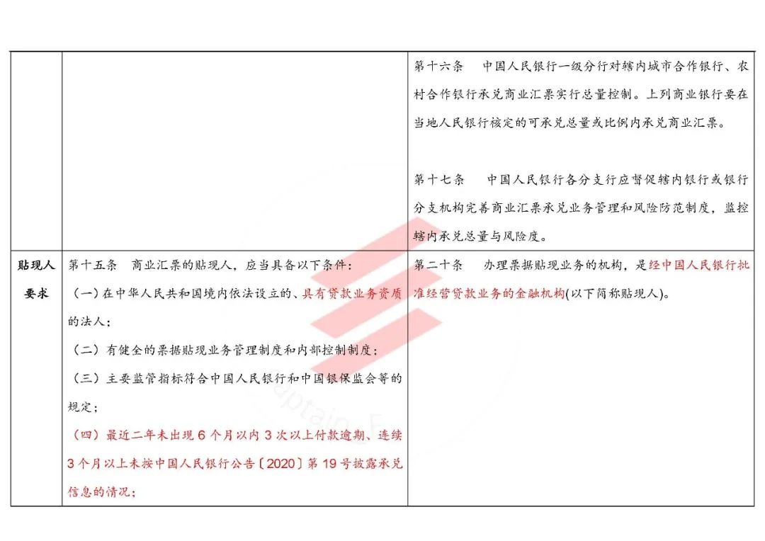 這里把原辦法“商品交易關系”,改為了與《票據法》相一致的“真實交易關系”,可謂是一個進步。但關鍵是又提出了“能夠反映真實交易關系的材料”(原來1997年的文直接列舉了增值稅發票和商品交易合同復印件),實際上可能還提高了貼現機構審查真實貿易背景的要求——其實后來的224號文之類的那套標準反而好用,因為很明確,告訴你合同和發票看復印件就行啦、電子商務企業看電子訂單也可以啊。
