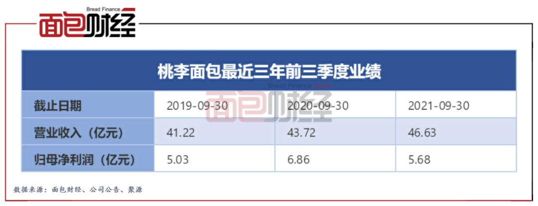 進入2021年以來,桃李面包的歸母凈利潤出現持續下滑,第一季度、第二季度分別同比下降16.27%和7.52%。最新披露的第三季度業績顯示,公司歸母凈利潤增速進一步下降至-25.82%。