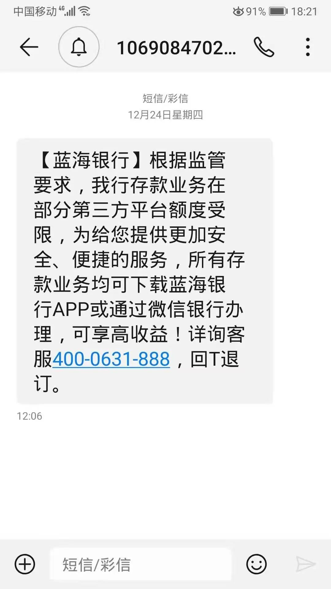 部分中小銀行已在開展自救。資深金融消費者周敏向《財經》記者提供了一張藍海銀行發送給她的短信截圖,內容主要為邀請其通過藍海銀行app或微信銀行辦理相關業務。