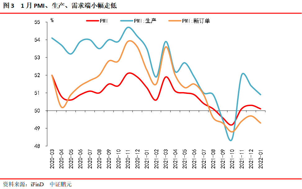 (一)PMI小幅下行,生產和需求有所走低,主要受1月季節性影響,但穩增長的預期凸顯